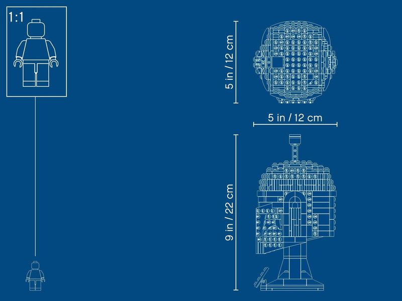 - This LEGO Star Wars Boba Fett Helmet measures 8.5” (21cm) high, 4.5” (11cm) wide and 4.5” (11cm) deep – it doesn’t take up lot of space, but its striking details are sure to delight any Star Wars fan.