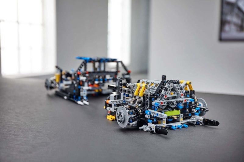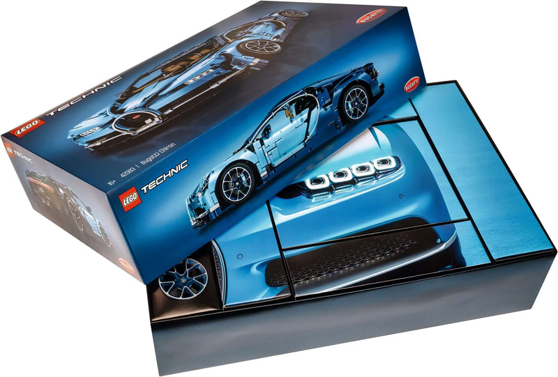 Explore engineering excellence with the LEGO Technic 42083 Bugatti Chiron advanced building set. This exclusive model has been developed in partnership with Bugatti Automobiles S.A.S to capture the essence of the quintessential super sports car, and comes with gleaming aerodynamic bodywork, logoed spoked rims with low-profile tires, and detailed brake discs. The accessible cockpit features a Technic 8-speed gearbox with movable paddle gearshift and a steering wheel bearing the Bugatti emblem. Insert the top speed key and you can switch the active rear wing from handling to top speed position. The rear lid affords a glimpse of the detailed W16 engine with moving pistons, while beneath the hood you’ll discover a unique serial number and a compact storage compartment containing a stylish Bugatti overnight bag. This 1:8 scale model comes with a classic Bugatti duo-tone blue color scheme that reflects the brand's signature color, and a set of stickers for additional detailing. The set is delivered in luxurious box packaging and includes a color collector’s booklet with comprehensive building instructions.
