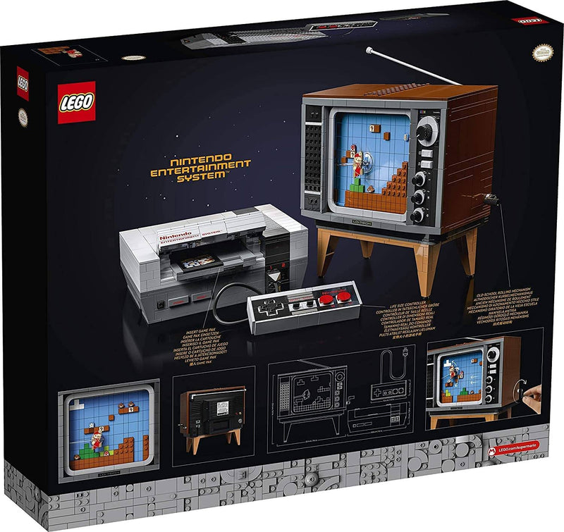 • Trigger nostalgic memories as you build this wonderfully detailed LEGO® brick Nintendo Entertainment System™ (71374) and interactive, 1980s-style television displaying the classic Super Mario Bros.™ game.• The TV has a handle-operated scrolling screen and if you scan the action brick by placing LEGO® Mario™ (figure not included) in the slot on top, he will react to the on-screen enemies, obstacles and power-ups.• Authentic details of the NES console are recreated in LEGO® style, including a controller and an opening slot for the buildable Game Pak with a realistic locking function to delight Super Mario Bros.™ fans.• Whether you were an NES gamer back in the day, a fan of retro stuff, or are just looking for an immersive, fun, creative DIY project to leave you feeling revitalized, this 2,646-piece model building kit is ideal for you.