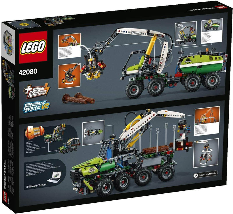 Enjoy a rewarding build and play experience with the LEGO® Technic™ 42080 Forest Machine. This detailed replica of a real-life forest harvester comes with lots of realistic features, including working suspension, articulated steering and a multidirectional harvester head with a spinnable cutter blade. Activate the included LEGO Power Functions motor and engage the advanced pneumatic system to operate the motorized boom and grabber. You can also rotate the driver's cab to move the boom through more than 180°. This 2-in-1 advanced building set comes with 2 buildable tree trunks and rebuilds into a rugged Log Loader.